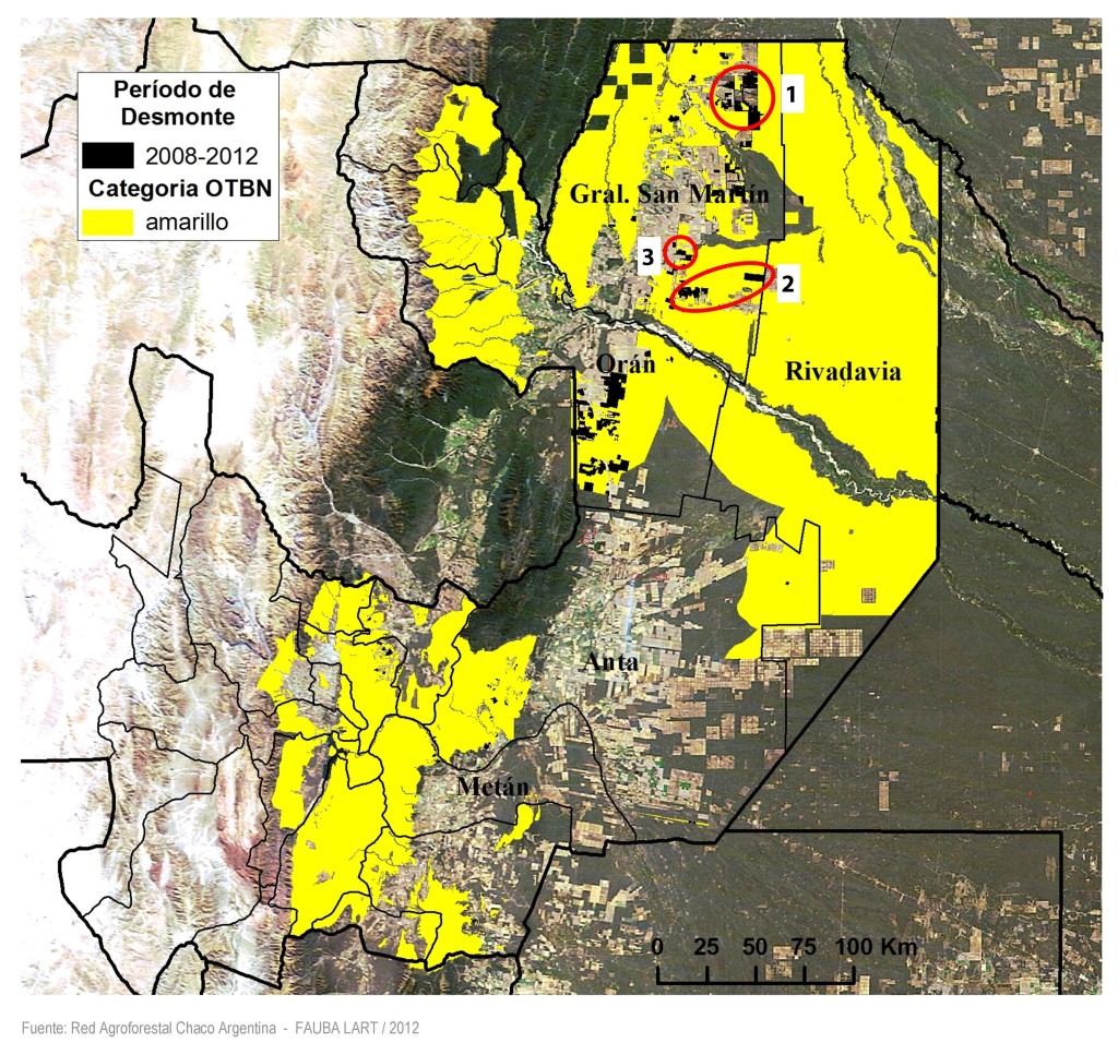 Mapa Desmontes en categoria Amarilla OTBN Salta 2008 - 2012 « Conflictos Ambientales y Territoriales « Descargas