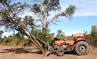 En los campos en donde se implantan estos carteles se desmontan bosques nativos. Esto queda evidenciado por la formación boscosa no desmontada, que objetivamente acredita que las abatidas no eran especies invasoras. Lo señalado es fácil de acreditar, si es que se tuviera la voluntad de combatir estas graves infracciones. Las irregularidades se pueden comprobar, repetimos que fácilmente, a través de una inspección de los profesionales de la Dirección de Bosques. Verificarán que abatieron montes nativos y no especies invasoras. De esta manera, quedaría al descubierto la repetida estrategia que encubre los desmontes clandestinos.